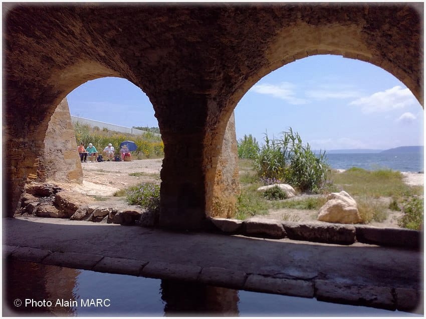 L’étang inondé de soleil, la mer en toile de fond, et ce petit lavoir médiéval qui invite à l’aquarelle : voilà un instant suspendu, dont le souvenir s’accroche durablement au papier.