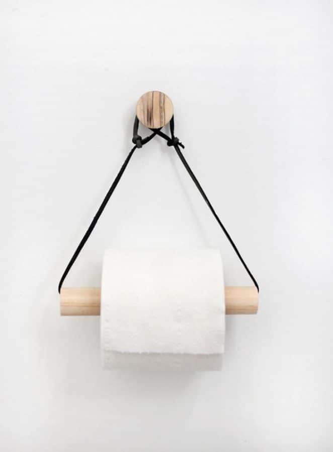 Changer du traditionnel distributeur de papier toilette ? Un morceau de bois, de la ficelle et un crochet, et le tour est joué : voici un dérouleur fait main qui ne passe pas inaperçu.