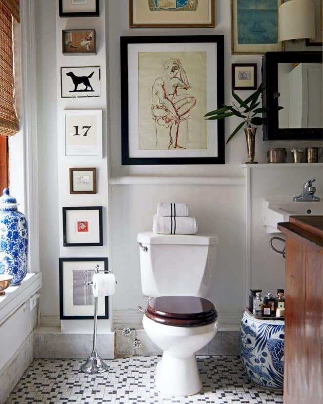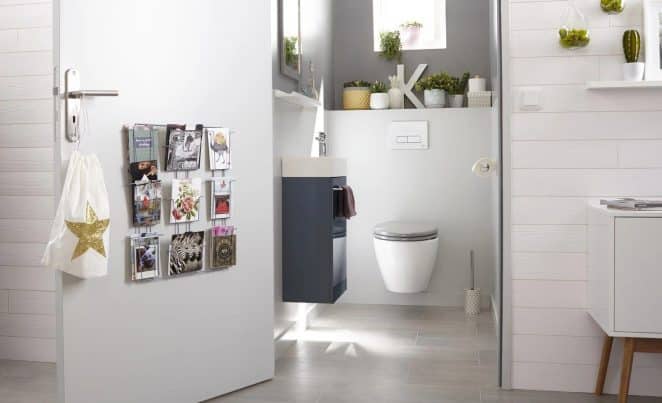 Pourquoi ne pas y exposer souvenirs de vacances, objets coup de cœur, plantes ou photos de famille ? Les toilettes deviennent alors le terrain de jeu déco par excellence.