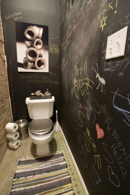 La peinture tableau noir ne se limite plus à la cuisine ou à la chambre des enfants : elle anime aussi les toilettes, où chaque message ou dessin renouvelle le décor.