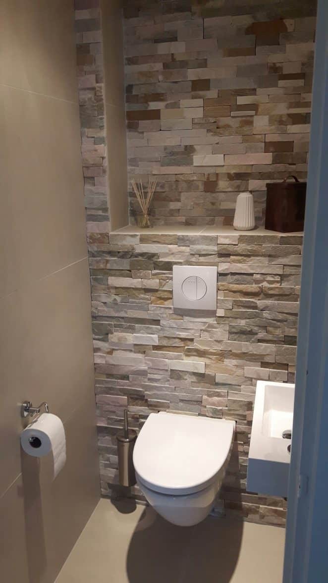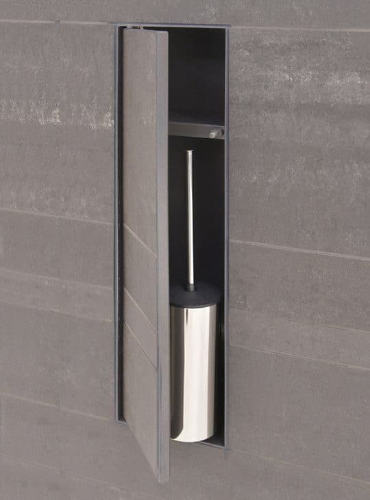 Une niche murale dissimule la brosse de toilette : pratique, discrète et esthétique.