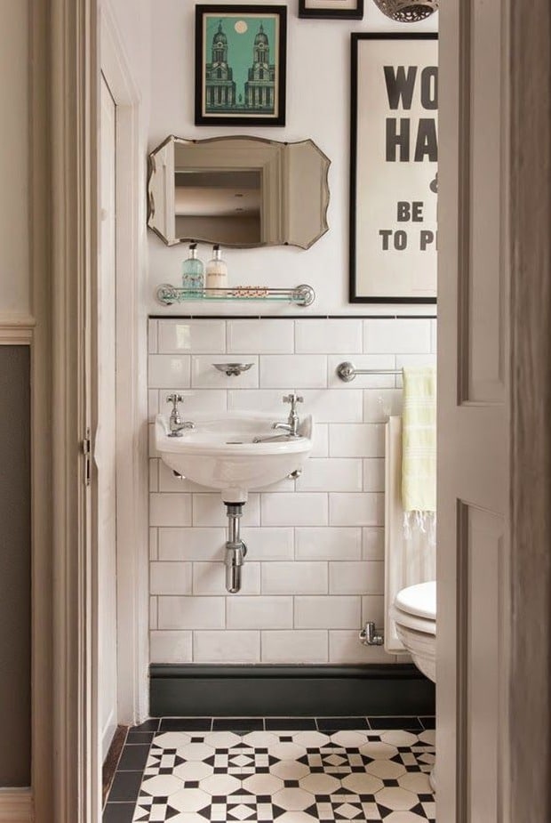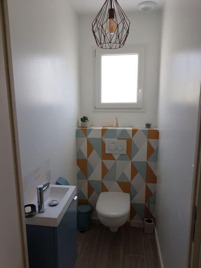 Indémodable et économique, le carrelage métro trouve toute sa place dans les toilettes. Marié à des carreaux de ciment, il renforce l’authenticité et dynamise l’ambiance, aussi bien dans la salle de bains que dans ce petit coin.