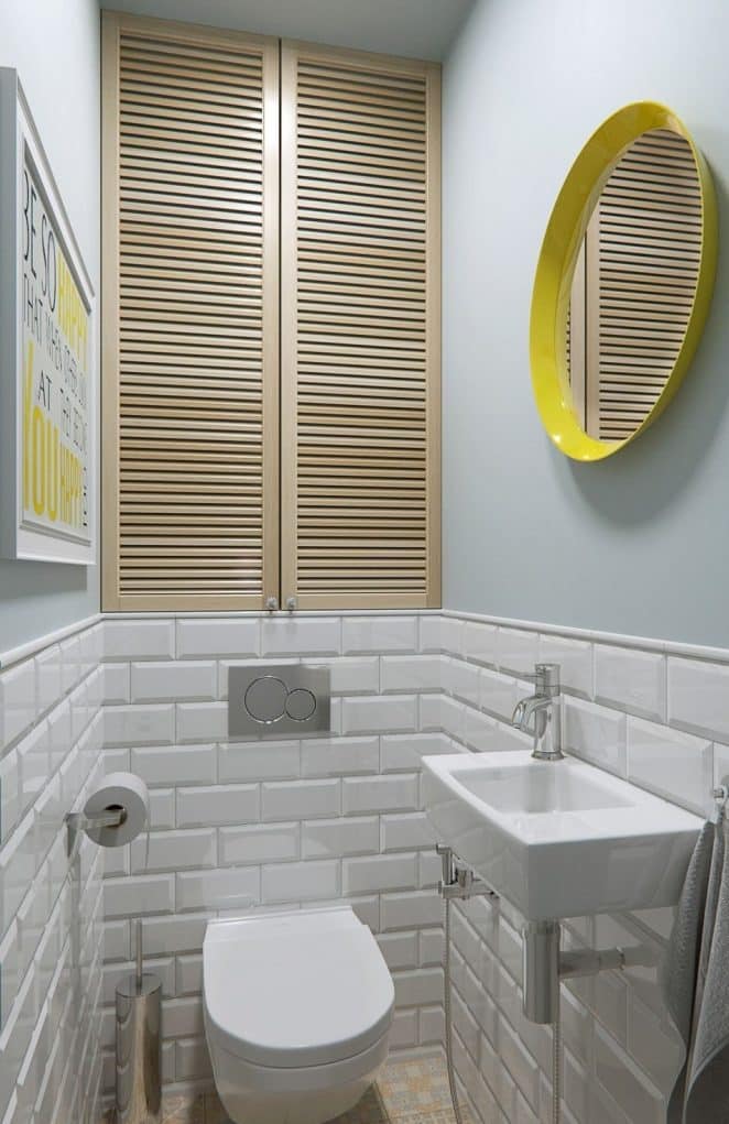 Un miroir ou une affiche jaune, et voilà des toilettes blanches réveillées. Pour ceux qui aiment cette couleur, il est même envisageable de décliner le jaune moutarde dans toute la maison avec ces idées déco.